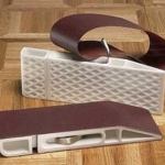 This extremely handy sanding block uses a standard 3×21 belt san… This extremely handy sanding block uses a standard 3×21 belt sanding belt. Unlike a homemade wood block, the paper stays taut. This tool is great for easing edges, prepping the edges of flake board to receive peel-and-stick edge banding, and anything else that requires you to leave a very crisp edge.