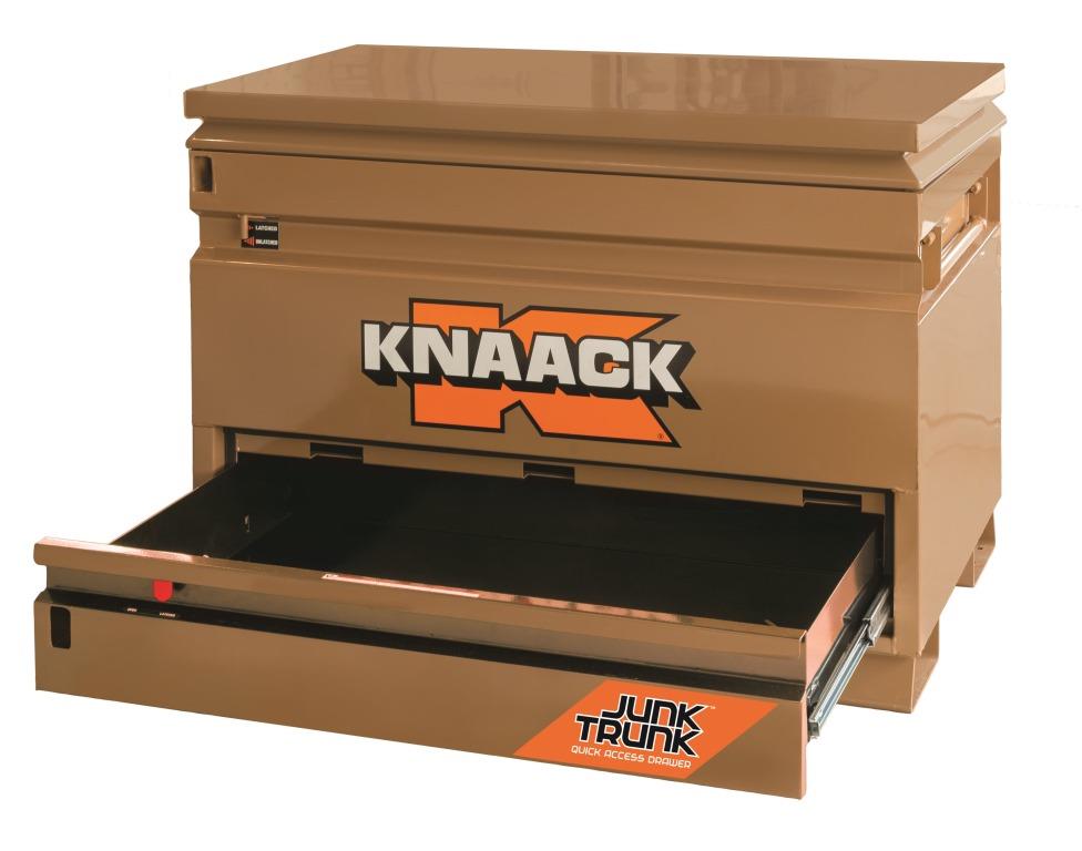 You wouldn’t think there would be a way to improve on something as simple as a job box and yet Knaack somehow did when they designed the model 4830-D Jobsite Chest with Junk Trunk. The improvement comes from the addition of one simple feature, a shallow drawer (Junk Trunk) that slides out from the front of the box. The drawer is a good place to store small and delicate items that could be lost or damaged if you threw them in with the nail guns, compressors, and other large items that go in the main compartment.