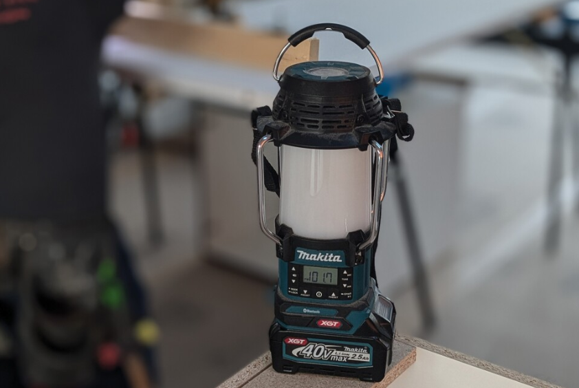 The Makita GRM04 (MR010G in Canada) 40V Max XGT Cordless Lantern Radio with Bluetooth, and flashlight packs a lot into a compact design. The radio boasts full sound with good overall reception range thanks to the protective housing around the lantern’s lens, which doubles as an antenna. When I ran just the radio starting with a full charge, it played for four work days. Runtime was shorter when I used the Bluetooth and the light functions, but it still outlasted other cordless radios on the site. On a site full of cordless tools, it’s nice not having to worry about replacing the battery on one of them, at least for a while.