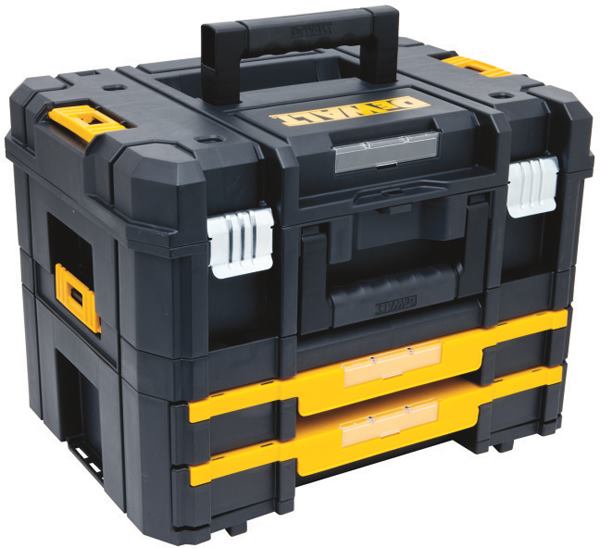 To help with the constant struggle of tool organization, DeWalt has released its new TSTAK line of tool-boxes. Four models are available: a two-drawer unit, a single deep-drawer unit, and two units that open like traditional tool cases. The deep-drawer version comes with removable lidded cups for things like screws and washers, and the double-drawer model has dividers that can be shifted around to suit your individual needs. The drawer units have ball-bearing slides, and all the cases are modular and can click together.