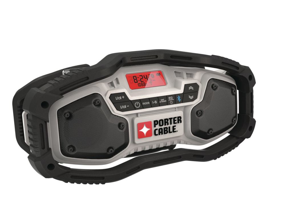 Porter Cable is keeping pace with hand-held technology with the release of its 20-Volt Bluetooth radio. The small radio, weighing just over 3 pounds, can stream music wirelessly from any Bluetooth enabled device. It also is equipped with an AM/FM radio and an additional port so a phone or device can be plugged directly into it. There are 12 radio presets and the unit is powered by a 20-volt battery or with the included AC adapter. Price: $130 / COO: China /portercable.com