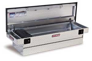 The WeatherGuard E-Line Saddle Box (model 143) is the first in a new line of pickup toolboxes introduced by security tool-chest manufacturer Knaack. Features include a secure locking system and tamper-resistant piano-style hinges, a lift-out tote tray, and a reinforced aluminum diamond-plate body with a powder-coat finish. Automotive-style latches and a 90-degree lid opening make for easy access. Price: $637. 800-456-7865. www.weatherguard.com