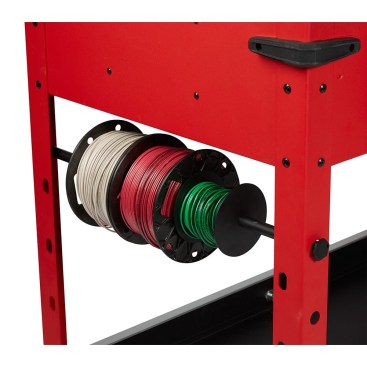 It has 100-pound soft-close drawer slides, built in power center—yes!—removable storage cups, an integrated wire spool holder, and movable utility shelves.