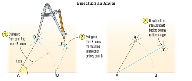 Or we can lay out any angle using a compass and a straightedge to bisect the angle as shown below.