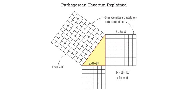 Leveraging the Pythagorean theorem. When we frame roofs or square large areas like a floor frame or lay out plates in preparation to stand walls, we can’t avoid the Pythagorean theorem: a2 + b2 = c2. If the abstract nature of this formula makes you nervous, it may be helpful to see the equation spelled out in geometric form, as shown below. (This visual explanation also gives us a construction of the square root function that maps the area of a square to its side length.)